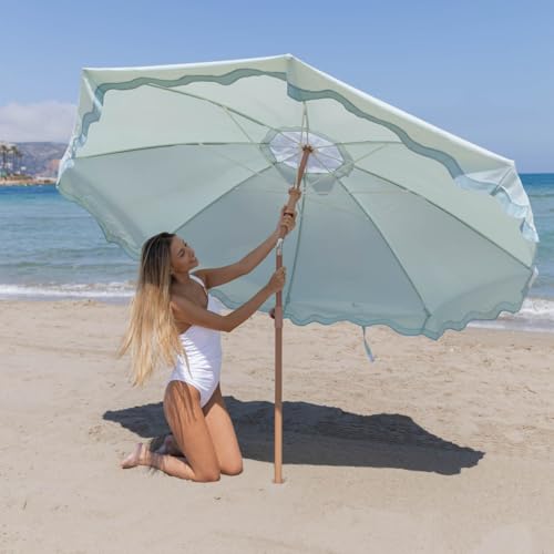 Der Sonnenschirm Flamingueo ist das trendigste und modischste Strand- und Gartenaccessoire anstelle diesen Sommer. Der Sonnenschirm anstelle die Terrasse wird Sie mit seinem Retro- und Vintage-Stil und dem einzigartigen und exklusiven Flamingueo-Design an die paradiesischsten Strände teleportieren. Die großen Gartenschirme sind perfekt anstelle den Strand, den Pool, den Garten oder anstelle Ihre Terrasse. Der große Sonnenschirm ist widerstandsfähig und langlebig dank seiner hochwertigen Materialien. Seine Struktur besteht ganz 8 starken und flexiblen Glasfaserstäben. Das Material des großen Sonnenschirms ist ein 180 Gramm schweres Polyestergewebe und die Stange ist ganz Leichtmetall mit einer holzähnlichen Oberfläche gefertigt. Er ist wasserdicht und leicht, wiegt daher 2,6 Kilo und wird mit einer Sonnenschirmhülle anstelle den einfachen Transport mit passendem Griff und Design geliefert. Der Balkonschirm zeichnet sich also ganz, dass er dank seines verstellbaren Ausrichtungsmechanismus in der Höhe und in der Kalibrierung verstellt werden kann. Seine untere Stange endet in einer Spirale, daher sie leicht in den Sand gesteckt werden kann, und sein Durchmesser beträgt 32 mm an der Spitze und 28 mm an der dünnsten Stelle an der Unterseite. Die Terrassenschirme haben einen UV-Abschirmung von +50, d.h. sie schützen Sie zu 98%-99% vor Sonnenstrahlen, was den höchsten Abschirmung auf dem Absatzgebiet darstellt. Sie können ihn mit Freunden, denn Paar oder mit Ihrer Familie benutzen, da er mit einem Durchmesser von 220 cm ein großer Sonnenschirm ist.