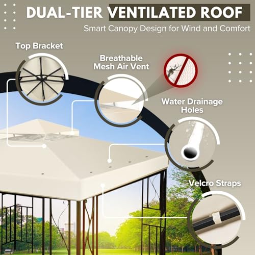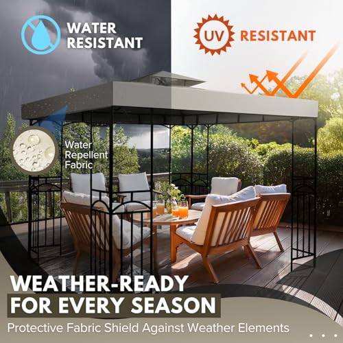 Langlebige Materialien – UV30+ 2-lagige Pavillon-Schutzabdeckung mit einer 1100 g/m² Polyesterschicht und einer wasserdichten PA-Beschichtung. Es ist absolut resistent gegen Sonnenlicht, Wind und Regen, so dass Sie sich keine Sorgen um Sonne oder Wind machen müssen