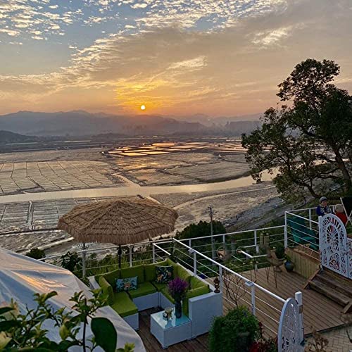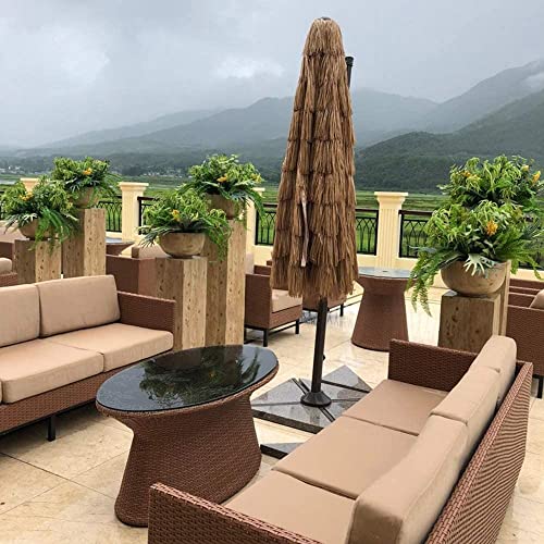 ■Der Sonnenschirm besteht jeglicher künstlichem PP-Gras + Polyestergewebe, das UV-Strahlen effektiv blockieren kann, winddicht und langlebig.