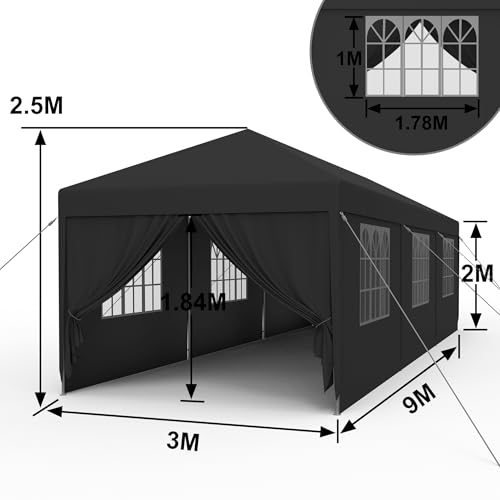 Froadp 3×9 m Garten Pavillons mit 8 Seitenwände Partyzelt Stahlkonstruktion Festzelt Wasserdicht Gartenpavillon Markisen Sonnenschutz Bierzelt für Garten Markt Hochzeit, Anthrazit
