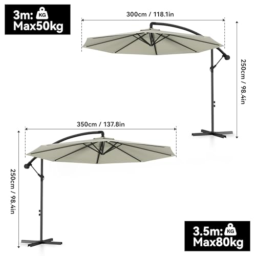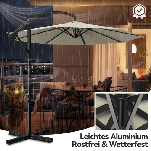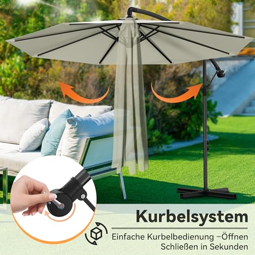 Froadp Ampelschirme mit Kurbel Alu Sonnenschirme Höhenverstellbar Balkonschirm UV40+ Sonnenschutz Windfest Gartenschrime Wasserdichte Marktschirm für Patio Terrase