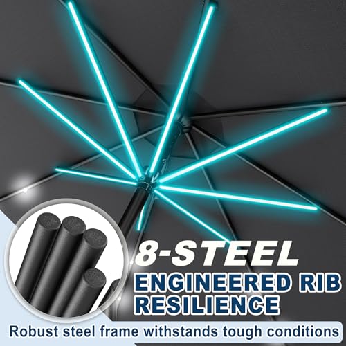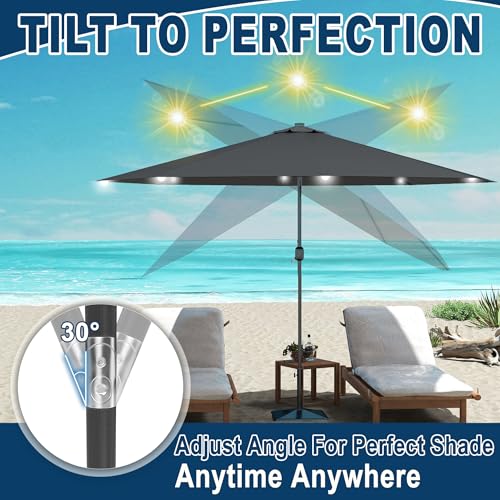 Froadp Sonnenschirm Groß, Achteckiger Strandschirm aus Polyester, Sonnenschutz Gartenschirm mit Regenschirmgriff, Tragbare Gartenschirm für Balkon Terrasse Schwimmbad (mit LED, Dunkelgrau/Beige)