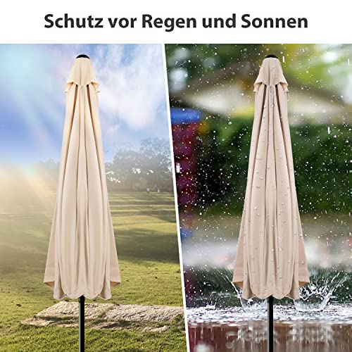 【Einfach zu öffnen und folgern 】Der Neigungswinkel ist stufenlos mit einer Handkurbel verstellbar. Sodass Sie ihn schnell öffnen sowie folgern können. Die 360-feiner Unterschied-Drehung ermöglicht es Ihnen, den Sonnenschirm so einzustellen, dass er das Sonnenlicht in verschiedenen Positionen mit Leichtigkeit blockiert