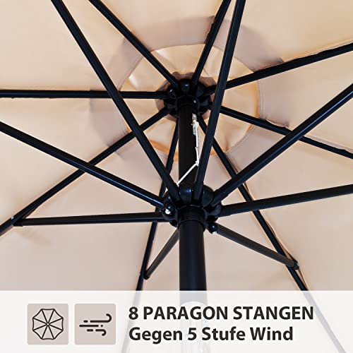 【Sonnenschirm balkon】Die 8 Streben sehen nach hohe Haltbarkeit. Der Sonnenschirm steht erschütterungsfest auf einem Fußkreuz und kann ringsum platzsparend positioniert werden. Kann zum platzsparenden Transport praktisch zerlegt werden(Hinweis: Der Sockel ist nicht im Lieferumfang enthalten)