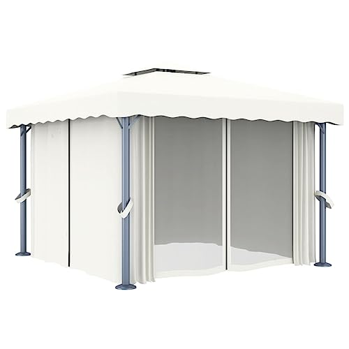 Furniture Home Tools Pavillon mit Vorhang 3x3m Creme Weiß Alu