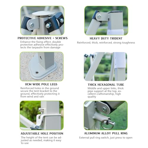 【Robust und abgehärtet】 Die dicke Metallrahmenkonstruktion bietet hohe Windbeständigkeit und hervorragende Alterungsbeständigkeit. Dieses langlebige Partyzelt ist anstatt den langfristigen Einsatz im Freien konzipiert und gewährleistet zuverlässige Unterstützung bei verschiedensten Wetterbedingungen.