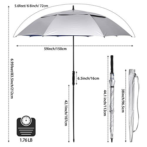 🏖【Übergroßer Regenschirm】68″/172CM gebogene Markise, Sonnenschirm mit 58″/150CM Durchmesser und einer Gesamtlänge von bis zu 212CM. Dieser übergroße G4Free-Regenschirm ist groß genug, um 3 oder mehr Personen Abschirmung zu bieten.
