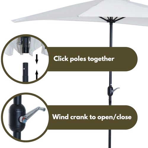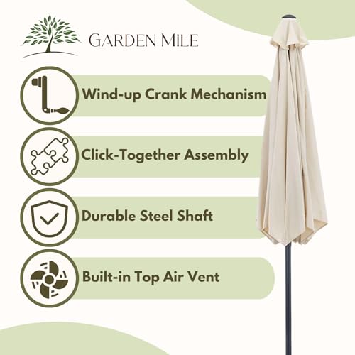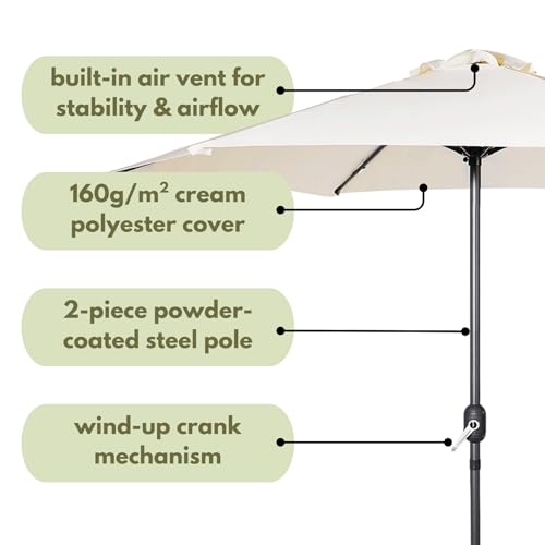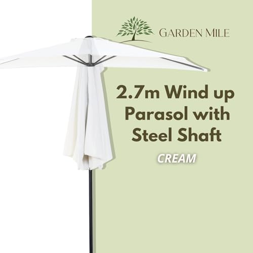 garden mile 2,7 m Aufziehschirm mit Stahlschaft, für den Außenbereich, Garten, Terrasse, einfache Montage, einfache Kurbel, offene Gartenmöbel, Schirm, Schatten