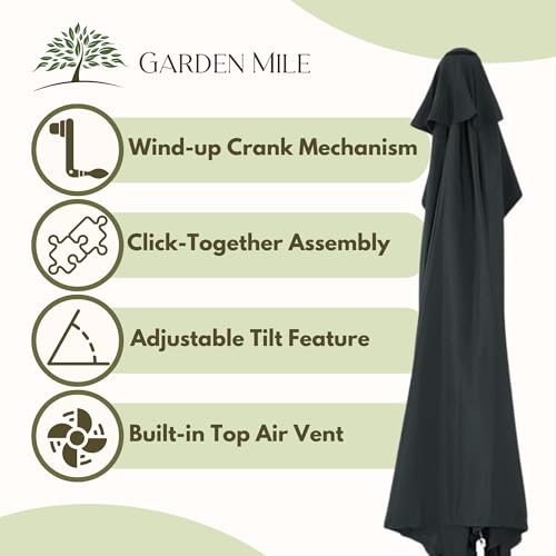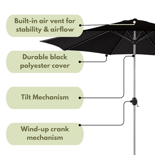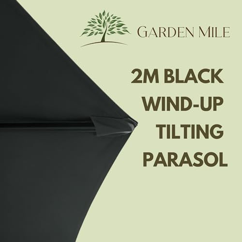 Garden Mile Marktschirm Terrassen Sonnenschirm mit Kurbel und Neigung, groß, 2 m, Schwarz