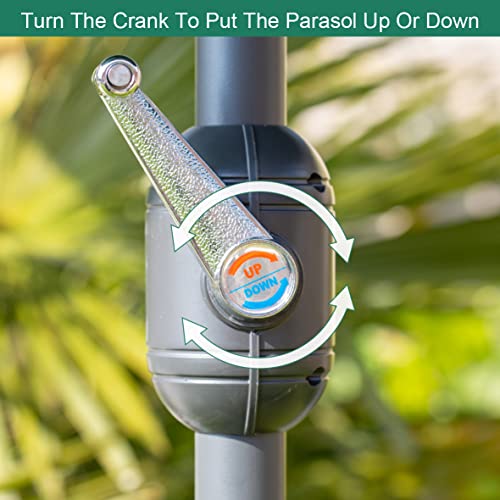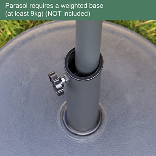 Der Schirm selbst hat einen Durchmesser von 270 cm und ist dadurch perfekt, um einen Tisch sintemal der Mahlzeit oder Kinder beim Spielen zu schattieren