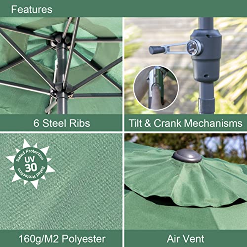GardenKraft 2,7m Gartenmöbel Sonnenschirm mit Kurbel & Kippfunktion, dunkelgrün, 270x270x240cm 14610