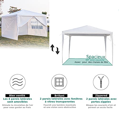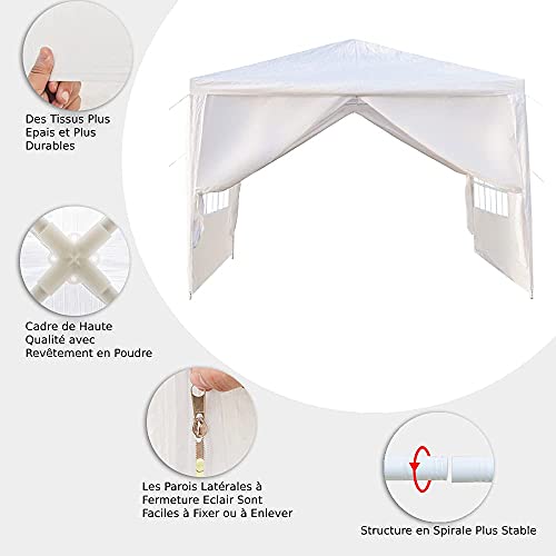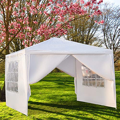 Hochwertig: Das Partyzelt hat einen pulverbeschichteten weißen Stahlrahmen, der rost- und korrosionsbeständig ist, das Material der Kunststoffverbindung des Hochzeitszeltes macht den Rahmen wahnsinnig. Der Lieferumfang umfasst das Terrassenzelt mit Seilen und Heringen für eine erhöhte Stabilität. Hochzeitszelt, Partyzelt