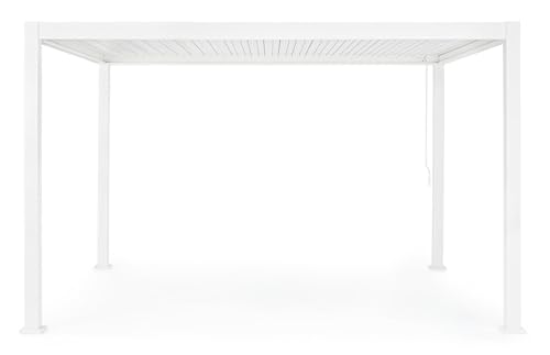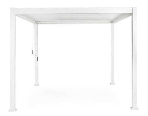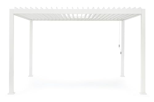 Durch die Edelstahlschrauben haben Sie die Gewissheit, ein robustes, wetterfestes Produkt zu kaufen, das Ihnen somit höchste Qualität bietet, wie nur Bizzotto das tun kann. Mit nur wenigen Handgriffen können Sie vor der Hitze der Sonne oder der abendlichen Brise geschützt werden, indem Sie die Klingen ausrichten, und bei plötzlichem Regen kein Problem: Die Abdeckung des Daches der Pergola Ocean bietet maximalen Schutz vor Wasser, und das integrierte Abfluss-System sorgt dafür, dass Sie und Ihre Gäste die Momente der Entspannung genießen können, ohne Angst vor jedem Wetter zu haben.