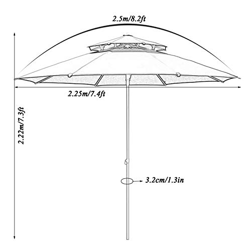 Tipp: Da die doppelschichtige oberseite des regenschirms ausgehöhlt ist, wird sie hauptsächlich zum sonnenschutz und zum windschutz verwendet. Wenn sie hohe anforderungen an den regenschutz haben, überlegen sie dies bitte zaghaft. Die sonnenschirmbasis ist nicht im sonnenschirm enthalten.