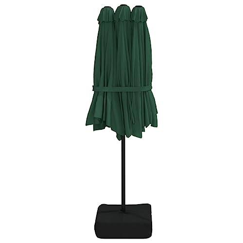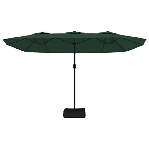 Farbe: Grün, DunkelgrauMaterial: Stoff (100% Polyester), pulverbeschichtetes EisenAbmessungen: 449 x 265 x 245 cm (L x B x H)Mastdurchmesser: 48 mmVerfügt über einen Sonnenschirmständer mit SandsackZusammenbau erforderlich: Ja