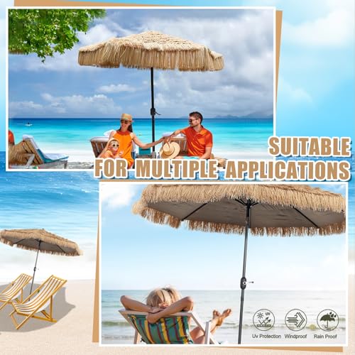 NATÜRLICHES STROHDESIGN: Das khakifarbene Vordach besteht aus Polyester und PP-Stroh und sorgt für einen authentischen tropischen Look, der Ihren Garten oder Ihre Strandlandschaft im Freien verschönert.