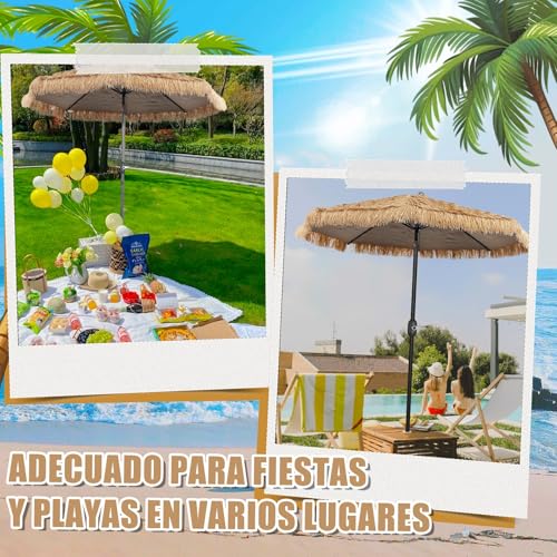 Verwandeln Sie Ihren Außenbereich mit unserem 270 cm großen khakifarbenen Strohschirm in ein tropisches Paradies. Mit einem realistischen, strohähnlichen Baldachin und einem stabilen Eisenrahmen gefertigt, bietet es dauerhaften Abschirmung vor der Sonne und verleiht Ihrer Terrasse oder Ihrem Strand ein natürliches, stilvolles Element. Das Handkurbelsystem sorgt für eine einfache Bedienung und die mitgelieferte Tragetasche ermöglicht einen mühelosen Transport zu jedem Outdoor-Finitum.