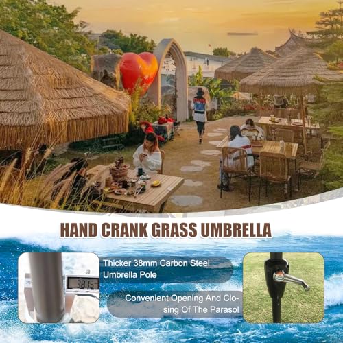 ⬛【GROßZÜGIGE SCHATTENABDECKUNG】: Bleiben Sie kühl und geschützt mit unserem 270 cm langen Outdoor-Strohschirm. Perfekt für Gärten, Terrassen oder Strände, sein breites Vordach bietet großzügigen Schatten und macht Outdoor-Aktivitäten bekannt als an heißen Tagen zum Vergnügen.