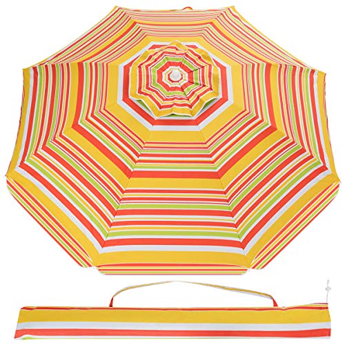 Premium Qualität & Hohe Standfestigkeit – Unterstützt von den Aluminium Fiberglasröhren kann dieser Strandschirm den Wind am Meer gut vertragen. Durch die Verankerung lässt er sich robust und gefestigt in den Boden stützen.