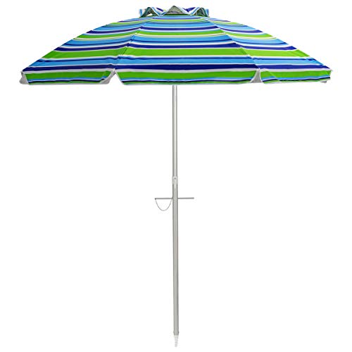 Premium Qualität & Hohe Standfestigkeit – Unterstützt von den Aluminium Fiberglasröhren kann dieser Strandschirm den Wind am Meer gut vertragen. Durch die Verankerung lässt er sich robust und gefestigt in den Boden katalysieren.
