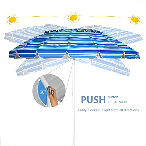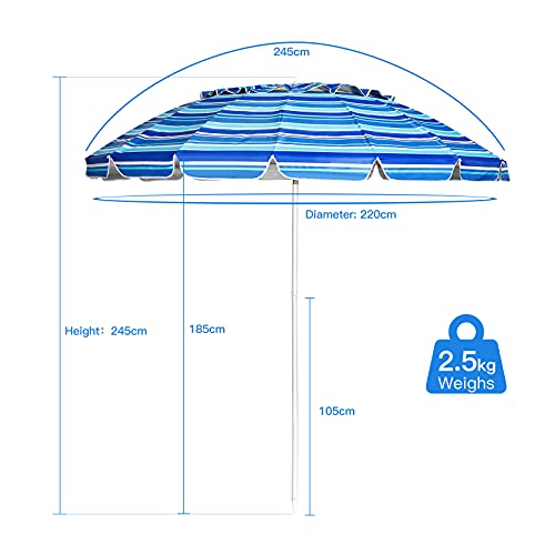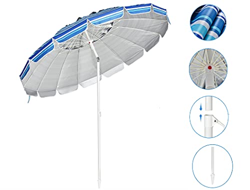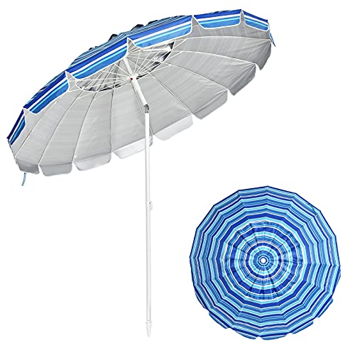 🏖️ Premium Qualität & Hohe Standfestigkeit – Unterstützt von pulverbeschichteter Stahlstange und 16 Fiberglas-Rippen kann dieser Strandschirm den Wind am Meer gut abkönnen. Durch die Verankerung lässt er sich stabil in den Boden katalysieren.