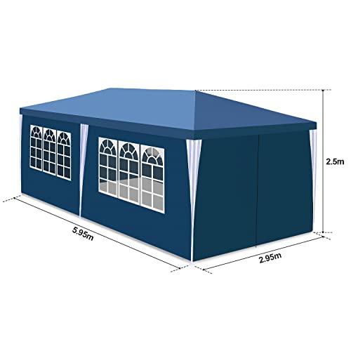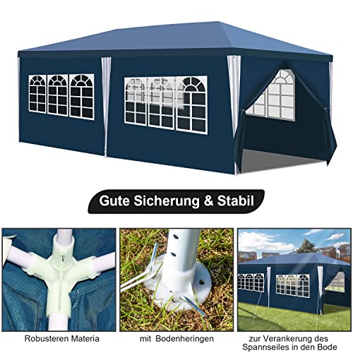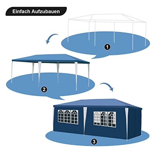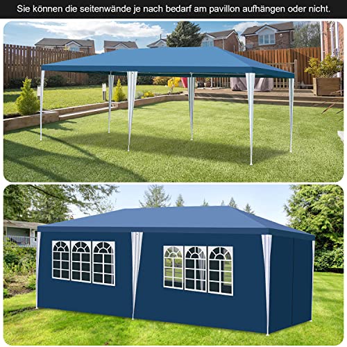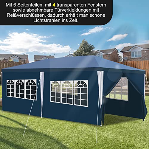 Gimisgu Pavillon Wasserdicht Gartenpavillon 3x6m UV-Schutz mit 6 Seitenteilen und Fenstern Hochwertiges Partyzelt Gartenzelt Blau für Garten Party Familientreffen