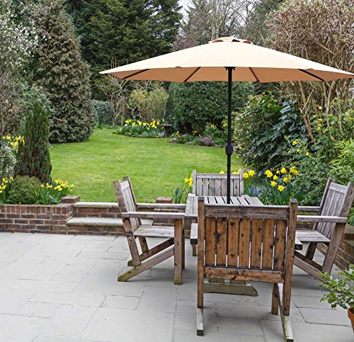 GlamHaus Gartenschirm Tischschirm 2,7M mit Kurbelgriff für Außen, UV40 Schutz, inklusive Schutzhülle, Garten und Terrassen – Robuster Stahl (Grau, Creme, Sand, Grün, Khaki), Khaki Sand, Einheitsgröße