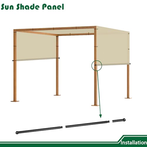 Einfache Installation: Alle 60 cm ist eine solide Öse an jeder Kante für eine einfache Installation im Rahmen. Paket kommt mit 2 gewichteten Stäben. Legen Sie die Terrassenabdeckung auf den Pergola-Rahmen mit herunterhängenden Stangentaschenseiten. Verstreben Sie jede Ecke mit Kabelbindern, dann schieben Sie die beschwerte Stange in die Stangentasche, um die Installation abzuschließen