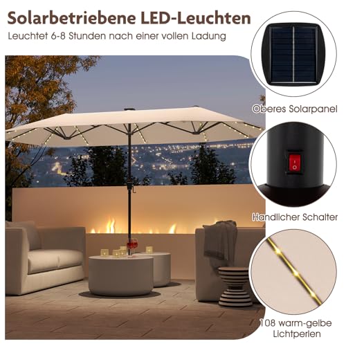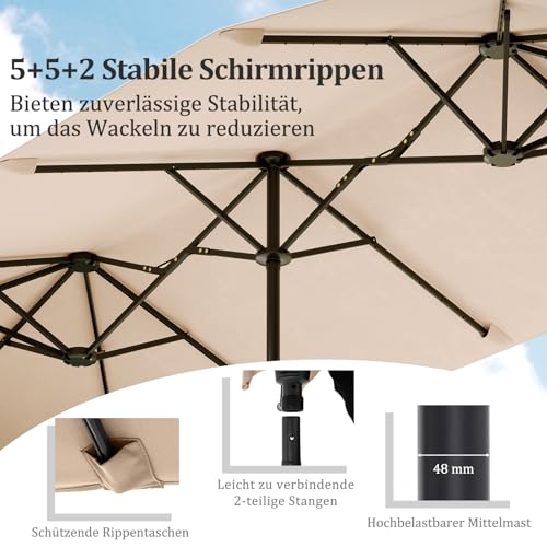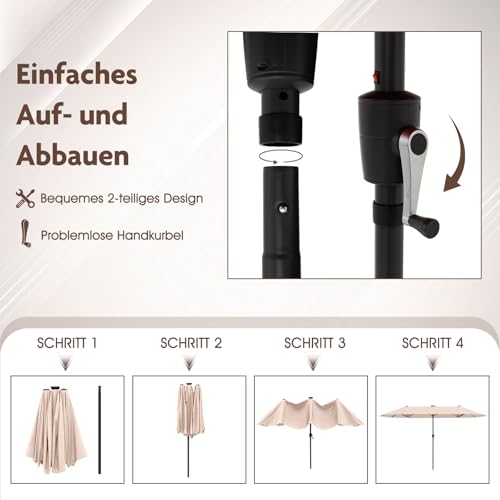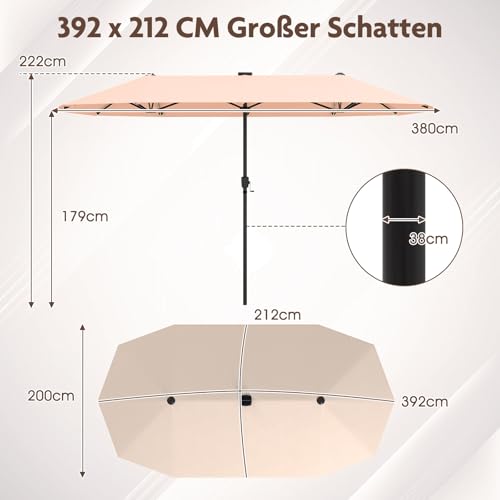 GOPLUS Doppelsonnenschirm, Sonnenschirm groß, mit Kurbel & 12 Rippen, Gartenschirm, UV-Schutz, Terrassenschirm Marktschirm für Pool, Hof, Terrasse