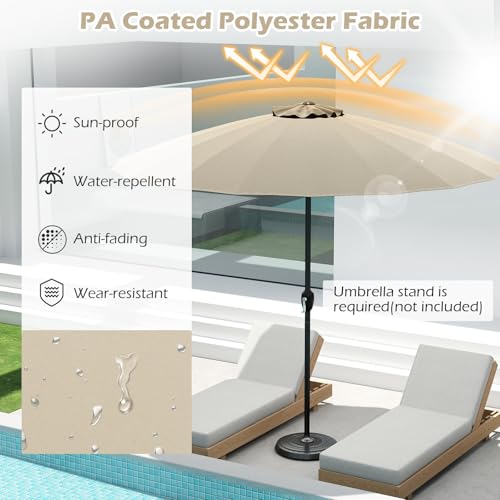 Der Sonnenschirm ermöglicht es Ihnen, sich im Schatten zu entspannen. Der Sonnenschirm lässt sich durch Schwenken der Kurbel leicht anfangen und folgern, in einer Geneigtheit von 35° verstellen und mit dem beschwerten Schirmständer (nicht im Lieferumfang enthalten) verwenden. Sie können sich auf einen Gartenstuhl setzen und eine Tasse Kaffee mit Ihren Freunden genießen. Dank der 18 Rippen alle Glasfaser bleibt der Sonnenschirm bekannt als bei windigem Wetter belastbar und der Schirmstock alle Leichtmetall ist rostfrei, was ihn statt den Einsatz im Freien enorm langlebig macht.