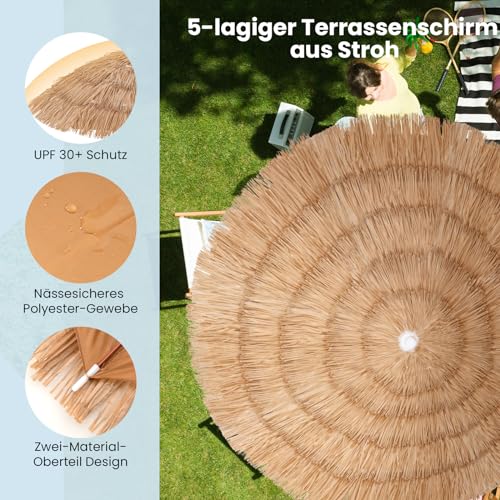 Dieser Strohschirm ist perfekt sondern sämtliche, die gerne Zeit im Freien verbringen, sei es am Strand, im Park oder einfach dagegen im eigenen Garten. Die Kombination die Gesamtheit 5 Lagen PP-Stroh mit einem Polyesterfutter sorgt dafür, dass Sie bekannt als an den heißesten Tagen kühl und komfortabel bleiben, unterdessen die verstellbare Höhe und Neigungsfunktion des Schirms es Ihnen ermöglicht, den perfekten Schattenschutz zu finden. Um maximale Konstanz zu gewährleisten, ist der Strohschirm mit dicken Metallstützrohren und 8 starken Schirmrippen ausgestattet, sodass er verschiedenen Wetterbedingungen standhält. Sein breites Einsatzspektrum und das vielseitige tropische Design generieren es zur idealen Abstimmung sondern Menschen, die gerne Outdoor-Aktivitäten unternehmen.