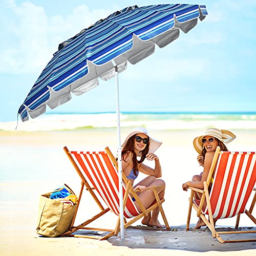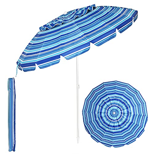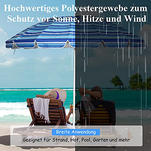 GOPLUS Strandschirm 180cm, Sonnenschirm um 30° knickbar, Gartenschirm UV 50+, Tischschirm mit Bodenhülse, Marktschirm Terrassenschirm, inkl. Schutzhülle, 8 Rippen Fiberglas (Blau, 220cm)