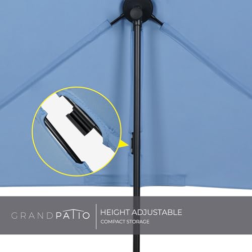 Grand patio Sonnenschirm Balkon mit Druckknopfneigung, 6 Rippen, Gartenschirm, Terrassenschirm für Rasen, Deck, Hinterhof, Pool,UV-Schutz 50+, 183CM × 134CM, Rechteckig-Staubblau
