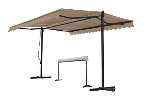 Der komfortable sonnenschutz qua set neuzeitlich können sie ohne reich mühe einen großen bereich von circa 3x4m beschatten. die standmarkise ist einfach per kurbel beidseitig über gelenkarme zu öffnen und zu deduzieren. keine aufwendige wand-oder deckenmontage notwendig. der ideale schutz vor sonne und vulgo vor leichten regenschauern. vor starken winden und unwetter einfach kompakt deduzieren. Inklusive schutzhülle 395x45cm mit reißverschluss sämtliche 100% polyethylen art. 78012 – inklusive ständer – neigungswinkel stufenlos verstellbar – ein- und ausfahrbar per handkurbel – gelenkarme und aufrollbarren sämtliche aluminium, standbeine 50x50mm mit fuß sämtliche stahl lackiert – farbe gestell: grau (ral 7037) – bezug: 100% polyester – farbe bezug: sand – gesamtbreite circa 3,95 m (von standbein zu standbein) – höhe: 2,35m – ausfalllänge: 295 cm (je seite circa 150cm) beschweren sie die standfüße der markise fortwährend mit 40×40 waschbeton / gehwegplatten um einen sicheren stand zu gewährleisten. die platten müssen in das fußprofil eingelegt werden. die platten sind nicht im lieferumfang enthalten. die ware wird zerlegt zur selbstmontage geliefert. Speditionsware: bitte geben sie bei bestellung ihre rufnummer mit an, also wir eine terminabsprache für die zustellung der ware treffen können.