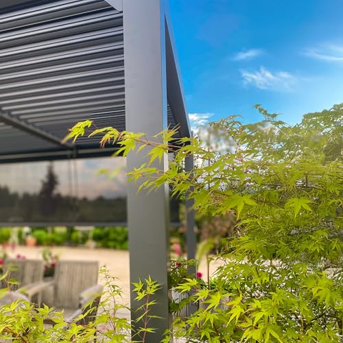 Design – Das moderne und stilvolle Design der Pergola 8×4 wasserdicht stabil winterfest – Kea V fügt sich perfekt in zeitgemäße Garten und Terrassengestaltungen ein. Die Konstruktion besteht aus hochwertigem, pulverbeschichtetem Aluminium, das für Langlebigkeit und Witterungsbeständigkeit sorgt. Das Lamellendach mit verstellbarem Neigungswinkel ermöglicht eine präzise Regulierung des Lichteinfalls – über spezielle Zugstangen lassen sich die Lamellen ganz einfach öffnen oder schließen.