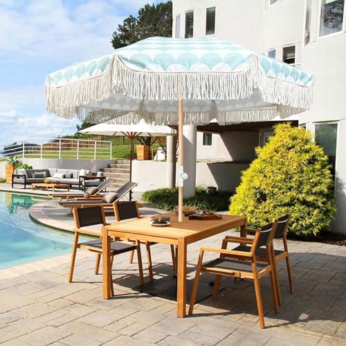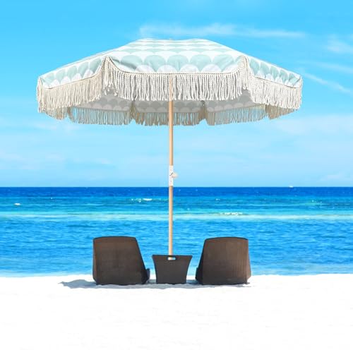 【Boho-Stil】: Der Fransen-Terrassenschirm ist einzigartig mit einem kreativen Fächermuster gestaltet, das sowohl stilvoll als alias kreativ ist und visuelle Schönheit hinzufügt. Mit Baumwollquasten am Rand der Schirmoberfläche, die den dekorativen Gesamteffekt verstärken. Ob auf der Terrasse oder draußen am Strand, er kann der Mittelpunkt der Vorsicht sein und zeigt Persönlichkeit und Geschmack.