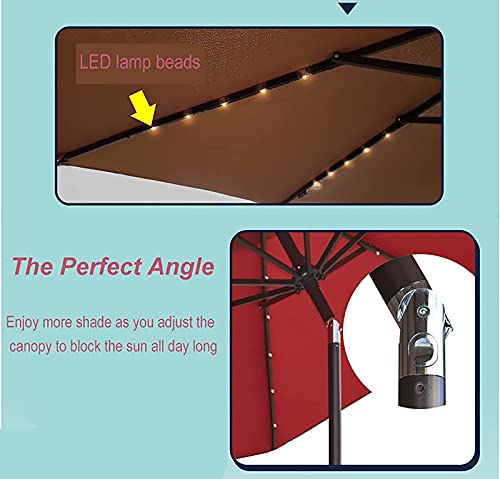 H-BEI 2,7 m hoher Sonnenschirm für Sommernachtdeko,Runder Gartenschirm mit Kurbel und 8 stabilen Rippen,40 kleine Lichter