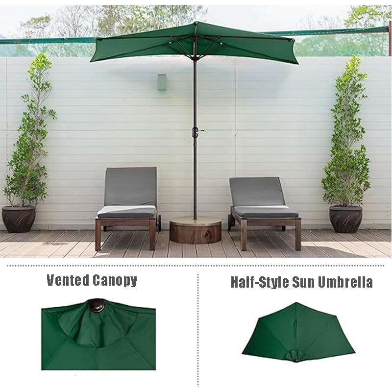 Halbrund Schirm Baldachin Ersatzbespannung 270cm 5 Streben Halber Sonnenschirm Ersatzbezug, Ersatz Baldachin Abdeckung Für Terrasse, Garten, Balkon(Dark Green)