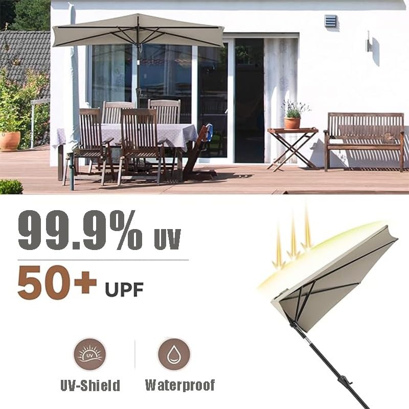 Unsere Terrassenüberdachungen bestehen aus hochdichter Polyesterfaser, um Wasser und UV-Strahlen abzuweisen. Dieser Tischschirm für den Außenbereich ist langlebig, lichtbeständig und auf Langlebigkeit ausgelegt.