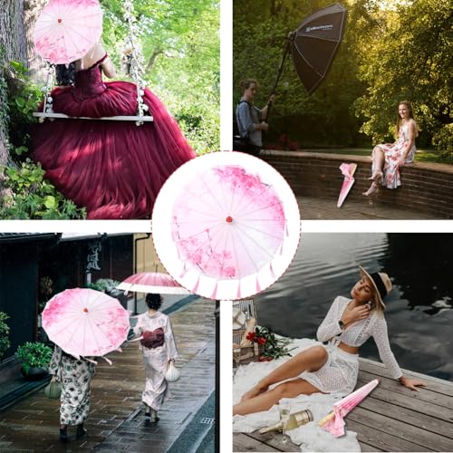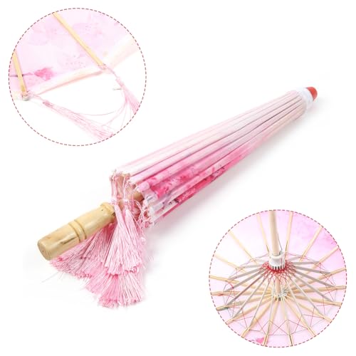 Handgefertigter Regenschirm aus Geöltem Papier Chinesischer Sonnenschirm Bambusseide Mit Quasten Regenfest Kunst Klassischer Tanzschirm Hochzeiten Partys Fotografie Kostüme Rosa