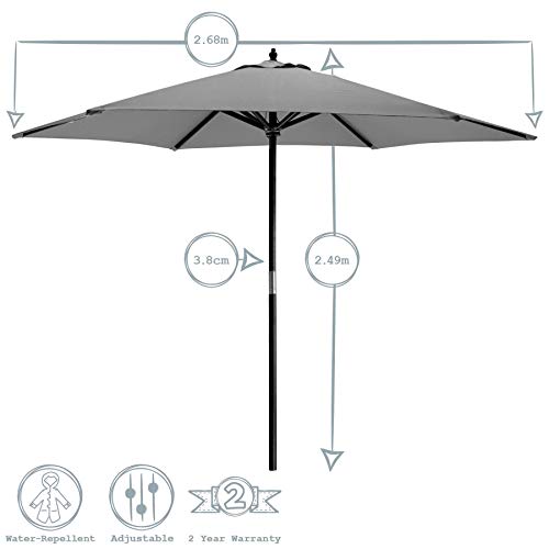 Sämtliche Sonnenschirm in unsere Kollektion besteht ganz einem Polyestergewebe gedehnt über eine zweiteilige Hartholzrahmen. Ein Rollensystem ermöglicht es Ihnen, schnell und bequem Ihren Sonnenschirm auf fast 3 m Durchmessern zu öffnen, mit einem Stift Metallverriegelung mit dem Sie zwischen drei offenen Positionen Urteilsfindung Sie Ihren Weltraum und Bedarf. Die Leinwand ist wasserabweisend, sodass Sie und Ihre Gäste werden noch eine Schutzschicht sollte das Wetter neuerlich genießen.