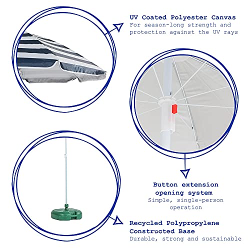 Jeder Sonnenschirm wird auch mit einer Gewichtsbasis geliefert, die aus 100% recyceltem Kunststoff hergestellt wird, ideal, wenn Sie kosten, Ihr bisschen als bewusster Empfänger zu tun, und abgrasen auch nach etwas robustem und stabiler Sommertage . Diese Sonnenschirmbasis sind leicht nachfüllbar mit Sand, Wasser oder einem anderen gewogenen Element der Votum, in drei Farben erhältlich – voten Sie zwischen dem klassischen Biergartengrün, neutralem Weiß oder coolgrau, um Ihren ultimativen Sommergarten-Setup zu erstellen!