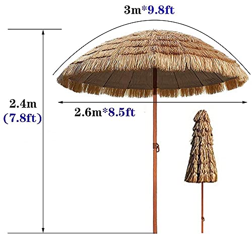 Hawaii-Tiki-Stroh-Sonnenschirm, 2,4 m x 2,4 m, für Outdoor-Dekoration, Strand, Garten, Sonnenschirm mit Neigung, Terrasse, ohne Sockel, natürliche Farbe, runder Regenschirm, 3 m x 3 m