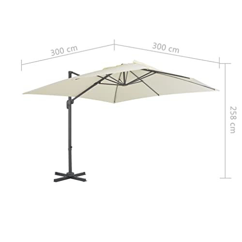 HINSD Freischwinger Schirm mit Aluminiumstange 300×300 cm Sandbezug Farbe: Sand-Material: Gewebe mit PA-Beschichtung + pulverbeschichtetes Aluminium