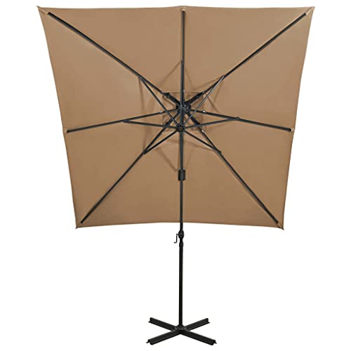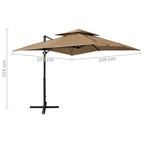 Dieser freitragende Regenschirm ist perfekt, um Schatten zu kultivieren und Sie vor den schädlichen UV-Strahlen der Sonne zu schützen. Die Gesamtheit UV-Abschirmung- und lichtechtem Polyester gefertigt, bietet Ihnen die Sonnenschirmhülle optimalen Abschirmung vor der Sonne und ist leicht zu reinigen. Es verfügt über einen stabilen Kreuzsockel für mehr Stabilität. Das exklusive Design dieses Sonnenschirms ermöglicht es Ihnen, ihn um 360 Abstufung zu neigen und zu drehen, um die Sonne zu blockieren. Die starke Aluminiumstange und die 8 Rippen machen den Sonnenschirm massiv leistungsfähig und langlebig. Dieser Gartenschirm lässt sich durch den Kurbelmechanismus einfach öffnen und kombinieren. Darüber hinaus hilft das Abschrift-Top-Design Baldachin bei der Belüftung. Bitte verbannen Sie, dass wir empfehlen, den Schirmstoff mit einem Imprägnierspray zu abfassen, wenn er starken Niederschlägen ausgesetzt ist.