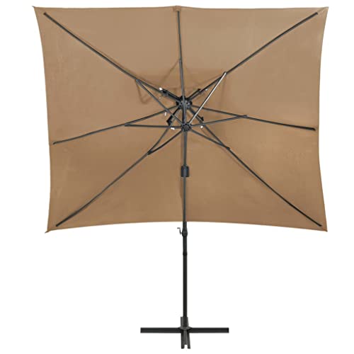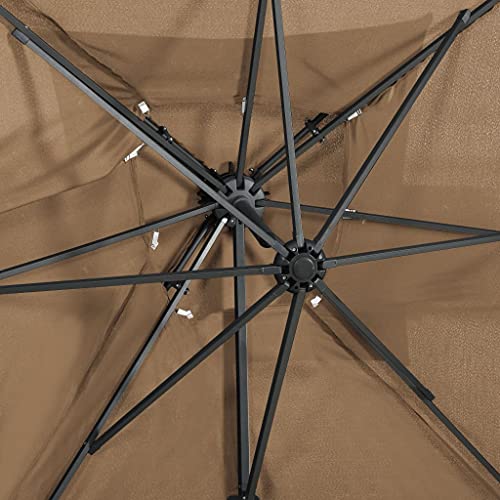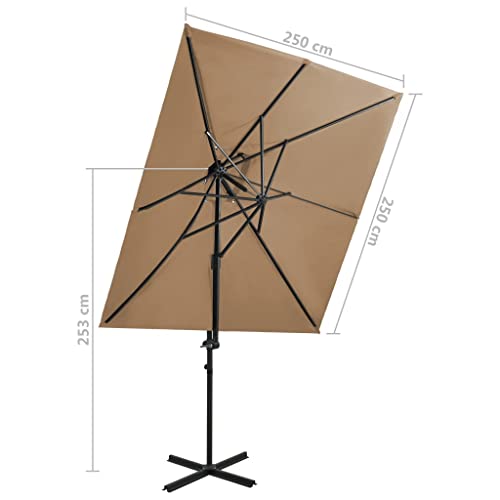Dieser freitragende Regenschirm ist perfekt, um Schatten zu bearbeiten und Sie vor den schädlichen UV-Strahlen der Sonne zu schützen. Allesamt UV-Abschirmung- und lichtechtem Polyester gefertigt, bietet Ihnen die Sonnenschirmhülle optimalen Abschirmung vor der Sonne und ist leicht zu reinigen. Es verfügt über einen stabilen Kreuzsockel für mehr Stabilität. Das exklusive Design dieses Sonnenschirms ermöglicht es Ihnen, ihn um 360 Stufung zu neigen und zu drehen, um die Sonne zu blockieren. Die starke Stahlstange und die 8 Rippen machen den Sonnenschirm besonders leistungsfähig und langlebig. Dieser Gartenschirm lässt sich durch den Kurbelmechanismus einfach öffnen und konkludieren. Darüber hinaus hilft das Duplikat-Top-Design Baldachin bei der Belüftung. Bitte achten Sie, dass wir empfehlen, den Schirmstoff mit einem Imprägnierspray zu erörtern, wenn er starken Niederschlägen ausgesetzt ist.