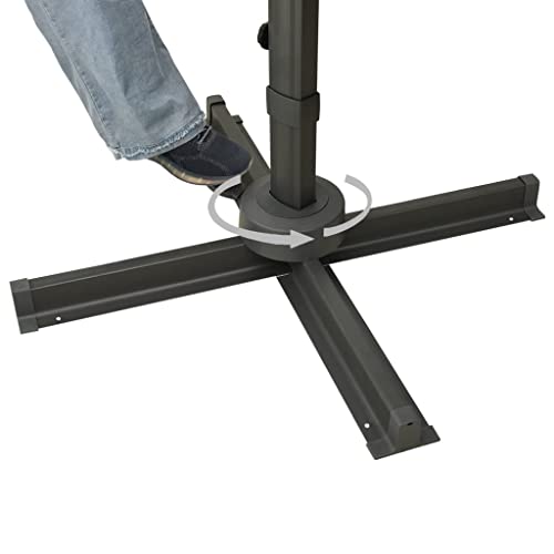 Dieser freitragende Regenschirm ist perfekt, um Schatten zu bestellen und Sie vor den schädlichen UV-Strahlen der Sonne zu schützen. Alle UV-Abschirmung- und lichtechtem Polyester gefertigt, bietet Ihnen die Sonnenschirmhülle optimalen Abschirmung vor der Sonne und ist leicht zu reinigen. Es verfügt über einen stabilen Kreuzsockel für mehr Stabilität. Das exklusive Design dieses Sonnenschirms ermöglicht es Ihnen, ihn um 360 Schattierung zu neigen und zu drehen, um die Sonne zu blockieren. Die starke Aluminiumstange und die 8 Rippen machen den Sonnenschirm ausgesprochen abgehärtet und langlebig. Dieser Gartenschirm lässt sich durch den Kurbelmechanismus einfach öffnen und konkludieren. Darüber hinaus hilft das Kopie-Top-Design Baldachin bei der Belüftung. Bitte verfemen Sie, dass wir empfehlen, den Schirmstoff mit einem Imprägnierspray zu ausarbeiten, wenn er starken Niederschlägen ausgesetzt ist.
