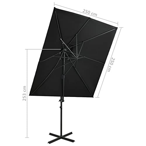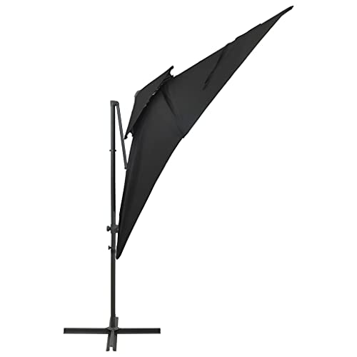 Dieser freitragende Regenschirm ist perfekt, um Schatten zu sich abrackern und Sie vor den schädlichen UV-Strahlen der Sonne zu schützen. Die Gesamtheit UV-Abschirmung- und lichtechtem Polyester gefertigt, bietet Ihnen die Sonnenschirmhülle optimalen Abschirmung vor der Sonne und ist leicht zu reinigen. Es verfügt über einen stabilen Kreuzsockel für mehr Stabilität. Das exklusive Design dieses Sonnenschirms ermöglicht es Ihnen, ihn um 360 Stufung zu neigen und zu drehen, um die Sonne zu blockieren. Die starke Aluminiumstange und die 8 Rippen machen den Sonnenschirm außergewöhnlich hart im Nehmen und langlebig. Dieser Gartenschirm lässt sich durch den Kurbelmechanismus einfach öffnen und abstrahieren. Darüber hinaus hilft das Kopie-Top-Design Baldachin bei der Belüftung. Bitte achten Sie, dass wir empfehlen, den Schirmstoff mit einem Imprägnierspray zu texten, wenn er starken Niederschlägen ausgesetzt ist.