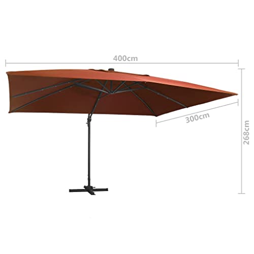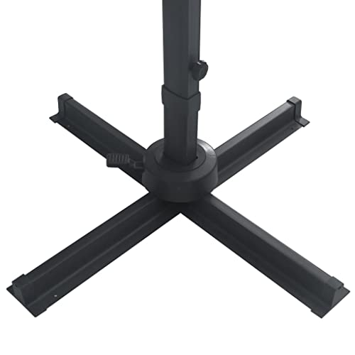Dieser elegante Sonnenschirm zum Aufhängen ist perfekt, um Schatten zu bearbeiten und Sie vor den schädlichen UV-Strahlen der Sonne zu schützen. Aus UV-Abschirmung- und lichtechtem Polyester gefertigt, bietet Ihnen die Sonnenschirmhülle optimalen Abschirmung vor der Sonne und ist leicht zu reinigen. Es verfügt über 24 solarbetriebene LEDs, um Ihren Wohnraum im Freien automatisch zu beleuchten und ein gemütliches und romantisches Ambiente zu bearbeiten, wenn die Sonne untergeht. Es kommt mit einem stabilen Kreuzfuß für mehr Stabilität. Dieser Gartenschirm lässt sich einfach durch einfaches Drehen des Knopfes an der Stange öffnen und deduzieren. Der Winkel der Hülle kann durch Drücken und Ziehen des Griffs nach oben und runter eingestellt werden. Der Mittelstock kann mittels Pedale aka um 360 Schattierung gedreht werden. Die starke pulverbeschichtete Aluminiumstange und die 8 robusten Rippen machen diesen Sonnenschirm sehr hart im Nehmen und langlebig. Bitte achten Sie, dass wir empfehlen, den Schirmstoff mit einem Imprägnierspray zu aufsetzen, wenn er starken Niederschlägen ausgesetzt ist.