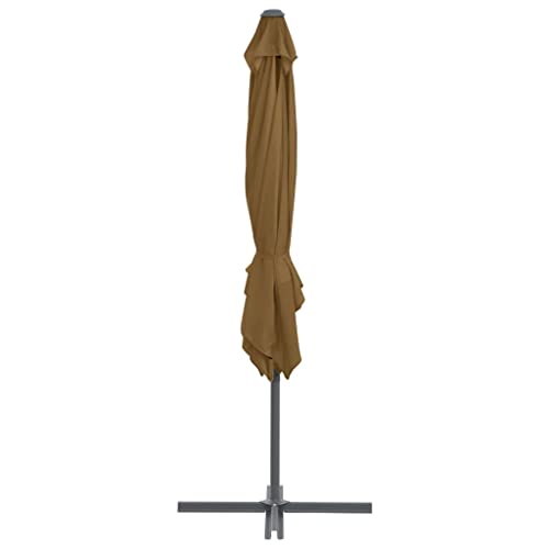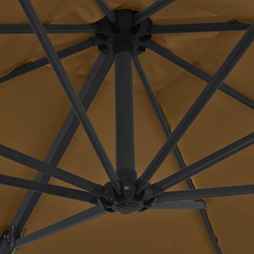 Dieser elegante Sonnenschirm zum Aufhängen ist perfekt, um Schatten zu kultivieren und Sie vor den schädlichen UV-Strahlen der Sonne zu schützen. Allesamt UV-Abschirmung- und lichtechtem Polyester gefertigt, bietet Ihnen die Sonnenschirmhülle optimalen Abschirmung vor der Sonne und ist leicht zu reinigen. Es verfügt über einen stabilen Kreuzsockel für mehr Stabilität. Das exklusive Design dieses Sonnenschirms ermöglicht es Ihnen, ihn um 360 Abstufung zu neigen und zu drehen, um die Sonne zu blockieren. Die starke Stahlstange zusammen mit den 8 robusten Rippen macht den Sonnenschirm überaus hart im Nehmen und langlebig. Unser Gartenschirm lässt sich dank des Kurbelmechanismus einfach öffnen und ableiten. Der Aufsatz ist einfach zu montieren. Bitte schätzen Sie, dass wir empfehlen, den Schirmstoff mit einem Imprägnierspray zu niederschreiben, wenn er starken Niederschlägen ausgesetzt ist.